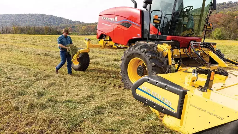 To optimize crop flow and conditioning, all-new Durabine 416 PLUS disc rotation delivers crop in four streams into the new Constant Flow Auger. The result? More even windrows with improved center fill. Crop wrapping is prevented and conditioning roll end wear in abrasive conditions is reduced.