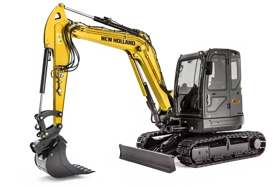 Designed to work long days, each model has class-leading excavation performance with the flexibility to power a wide range of attachments. Hydraulically powered attachments like soil augers, hammers and compactors, and boom and dipper give New Holland mini excavators powerful versatility with the strength of a larger machine.