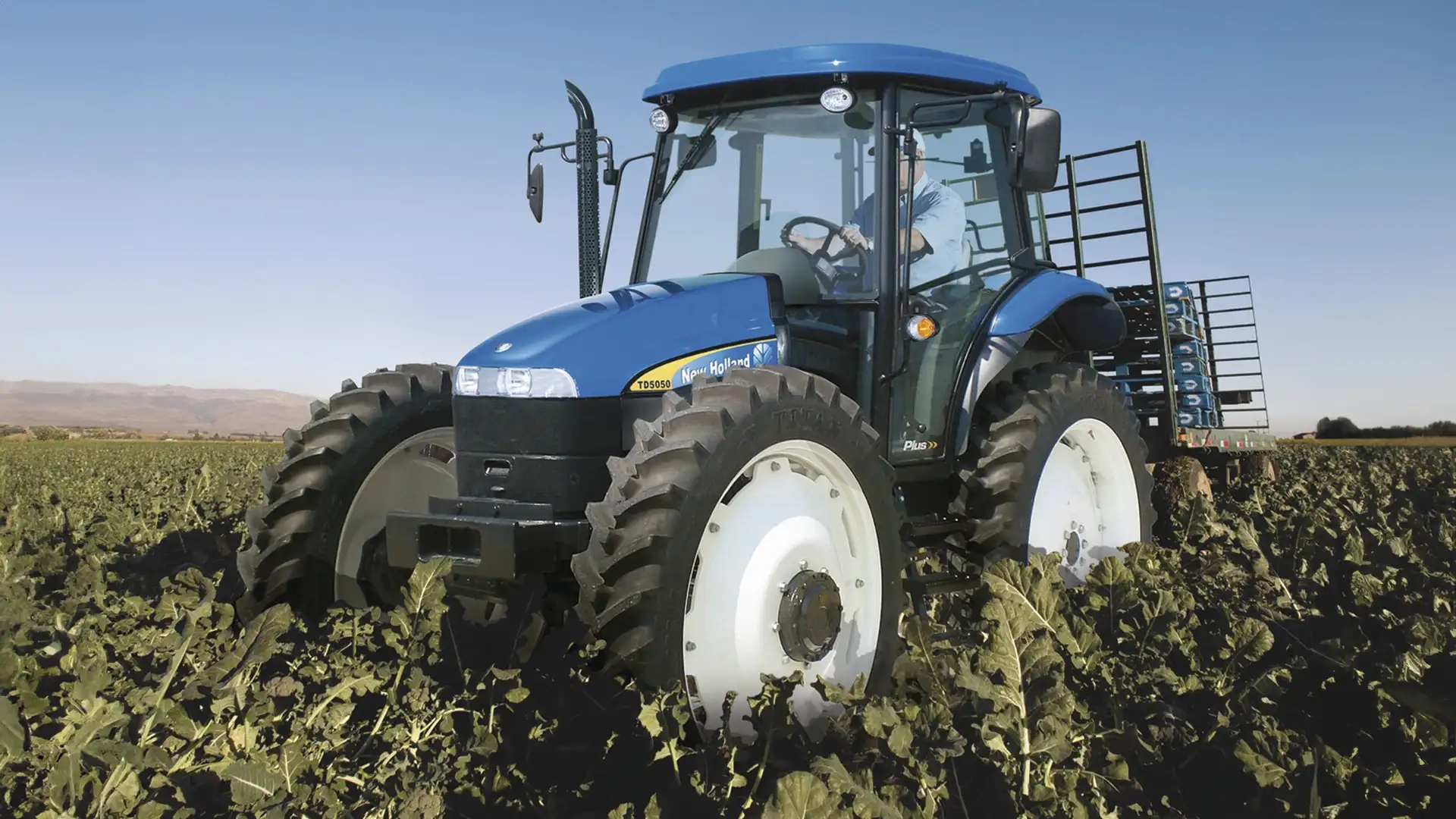For specialist applications such as vegetable, fruit, row crop and nursery work, New Holland offers the equal wheel size TDD High Clearance. Offered with a 12x12 Synchro Shuttle™ or 20x12 Synchro Shuttle™ creep speed (250m/h) transmission, this High Clearance model offers ground clearance of 635mm but is based around a standard TDD model. This allows you to specify the tractor to meet your specific demands.