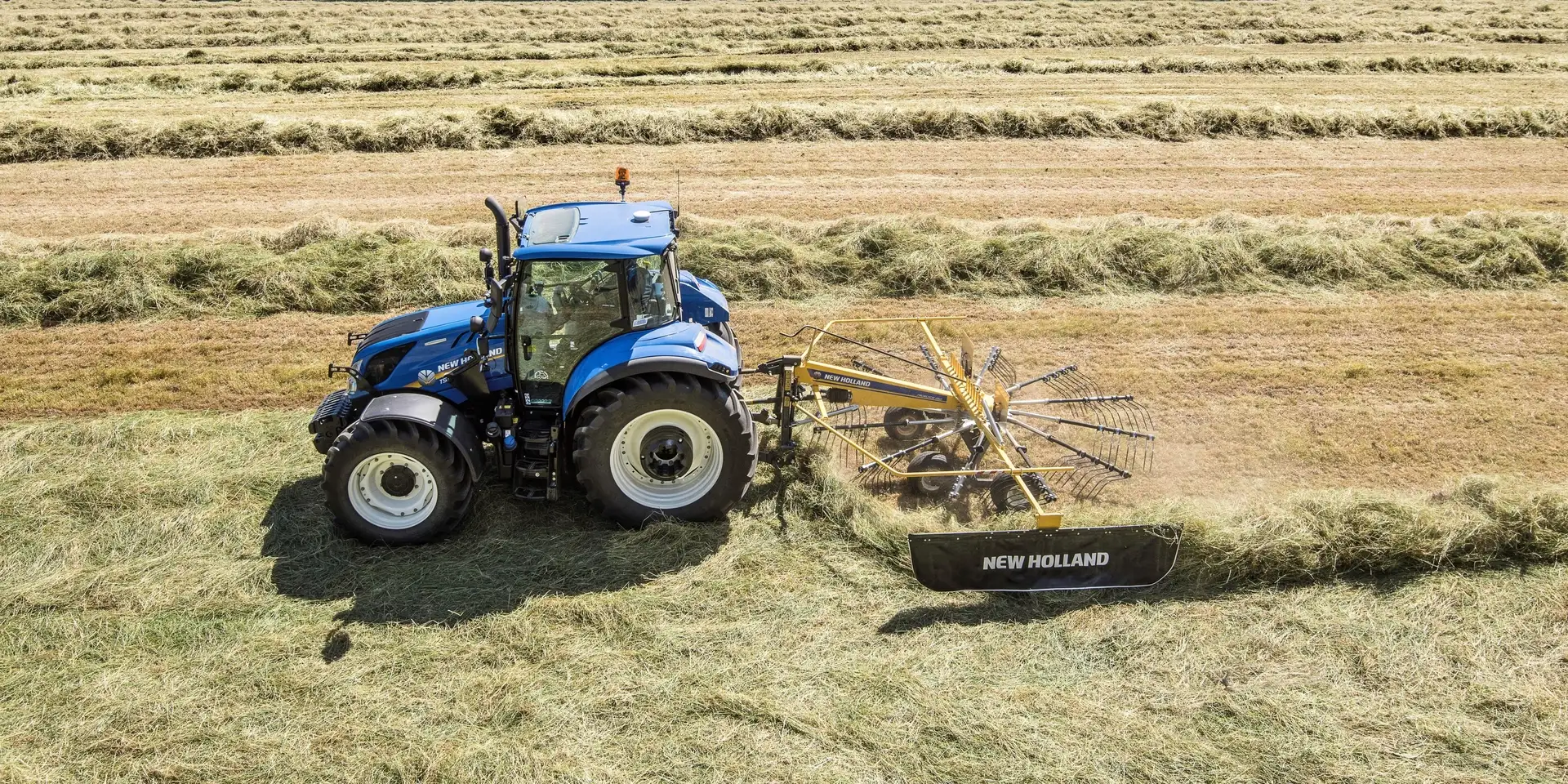The rake’s tine arms are not mounted in the traditional 90° configuration, rather they are placed tangentially to ensure optimal delivery and soft handling of the crop.