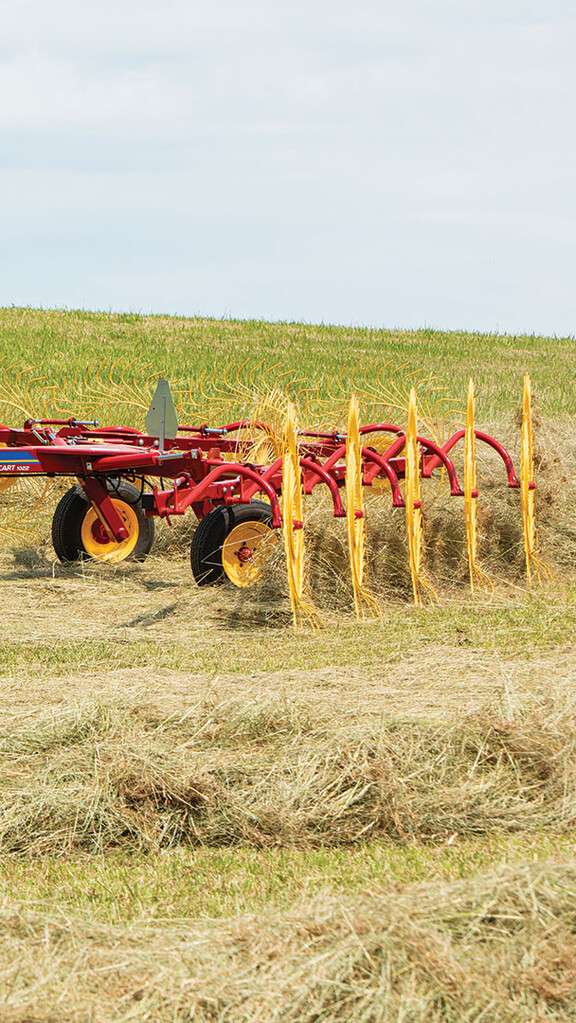 Les râteaux ProCart™ vous permettent de râteler de la façon que vous choisissez. Vous pouvez râteler sur l’un des côtés, retourner les andains mouillés ou sélectionner le ratissage en « V » en tournant rapidement les soupapes de verrouillage hydrauliques.
